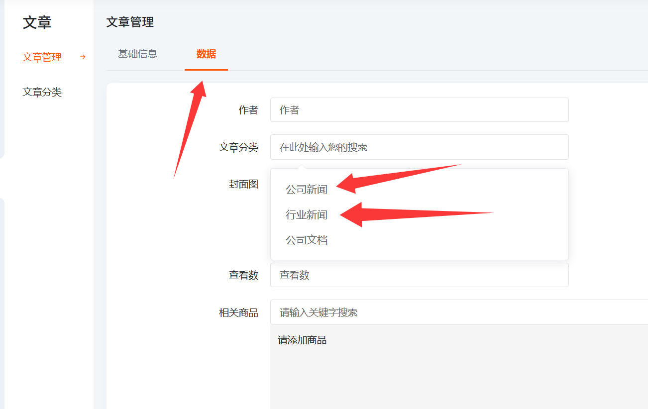 点击数据选项卡,根据清空选择文章分类为公司新闻或业内新闻二选一,不要选公司文档,那是公司内部文档的分类。