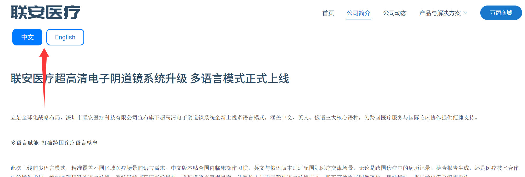 分别上传中英文内容之后,如果中英文都有摘要,则联安官网上会自动出现语言切换功能,如下图所示: