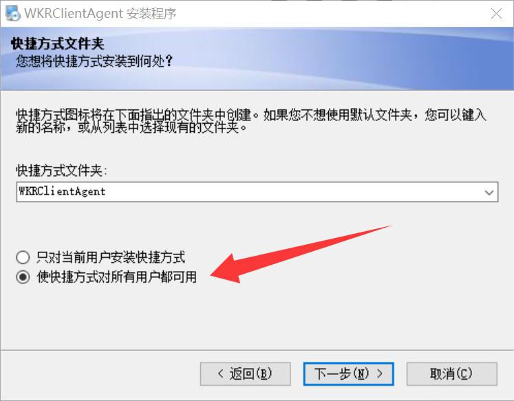 3. 快捷文件夹保持默认即可,选择”使快捷方式对所有用户可见“,继续点击下一步: